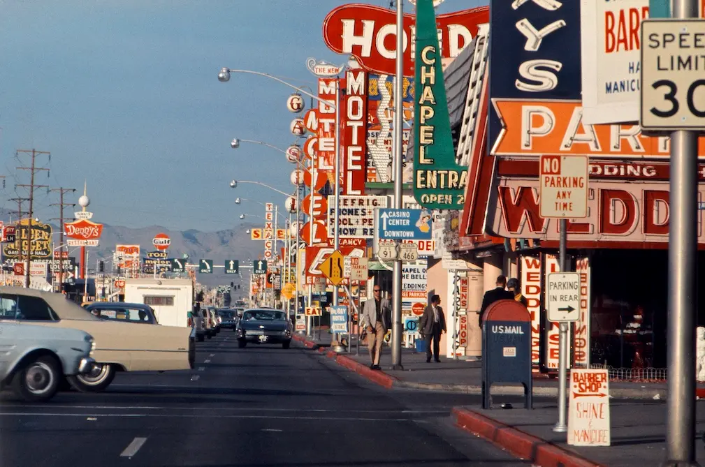 Venturi i suradnici ne mogu „pozitivno“ odrediti tajnu Las Vegasa u arhitektonskome smislu bez posezanja za analogijama iz vizualnih umjetnosti i kulture. Tako se Rim i razotkriće trgova (piazza) ovdje zadobiva u negaciji kao razotkriće golemih otvorenih prostora, velike skale i brzine (high speed). Sve su to temeljne odrednice za postavku koja je gotovo aksiomatska: