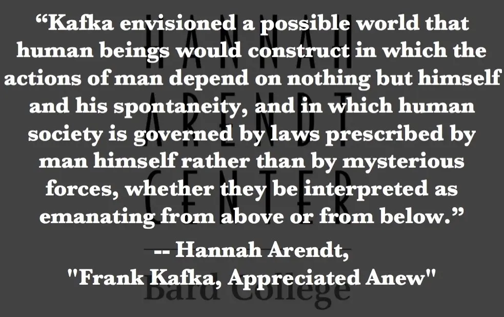 Obično tako biva. Ono što nismo tražili, odjednom se samo ukaže u svojoj pokazivosti i iskazivosti, ali ne kao čisti slučaj pronalaska, već kao svojevrsni sretni događaj bez kojeg ovaj tekst ne bi bio uopće moguć. Tražio sam knjigu Hannah Arendt Essays in Understanding, 1930-1954: Formation, Exile, and Totalitarianism, Harcourt Brace & comp., New York, 1994. u kojem je i onaj njezin znamenit tekst o Kafki među raznim izdanjima njezinih djela koje imam u svojoj vlastitoj knjižnici na mansardi, ali ishod je prošao neuspješno. No, iza drugih njezinih knjiga, skrivena je ležala jedna grafički uzorno uređena publikacija, vrhunski dizajn Mihajla Arsovskoga. Riječ je o časopisu Teka iz 1975. godine. Uz brojne izvrsne tekstove J.L. Borgesa, Mirka Kovača, Predraga Matvejevića i Ivana Fochta, jedan je bio odmah uočljivo izazovan za moje razumijevanje Kafke. Već na samome početku stajao je esej Brune Popovića naslovljen „Kafka, nihilizam ili humor“ (br. 8, str. 193-206.). Znam da sam te 1975. godine čitajući ovaj esej bio zadivljen njegovom jednostavnošću i jasnoćom kojom je razotkrivao ove aporije ideje i priče, univerzalnosti i partikularnosti, te nadasve onog što mi je onda bilo posve samorazumljivo, a nakon niz čitanja i ulaska u labirint kafkijanizma, više nije, štoviše smatram da je stvar krajnje aporetična i paradoksalna ne samo s Kafkinim slučajem u pisanju i mišljenju, već i s toliko jednoznačnim i gotovo nepronicljivim pojmom nihilizma. (v. Žarko Paić, prir. Kafka danas: mistika zakona i labirint slobode, Litteris, Zagreb, 2022.)